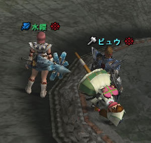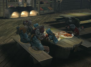 放置してたら猟団メンバーが隣に座ってました。