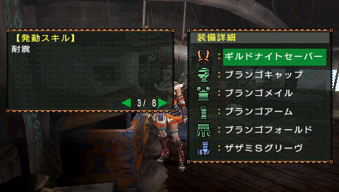 耐震を吹けるので、見切り+2、業物のスカルフェイス+ギザミUという異形で行きますw
