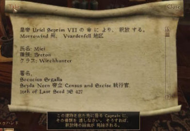 Morrowindに着いたから釈放だとか言っていたので、奴隷か何かのようだ。