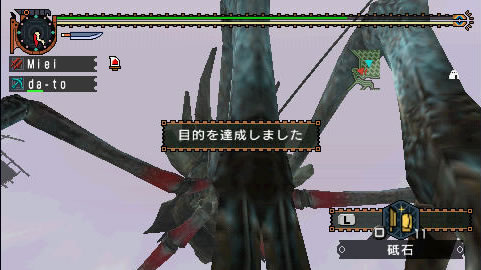 さてさて、水纓はとある事情のため早急にG級にしないといけなくなったので、夜中に脱兎をとっ捕まえてキークエストと緊急クエストに付き合わせました。